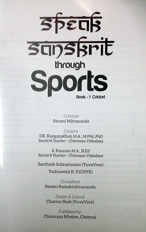 As part of this programme, Dr. Ranganathan and S. Kannan have come out with a book ‘Speak Sanskrit through Sports’ on cricket. This is a Sanskrit vocabulary book with special emphasis on commonly used terms in Cricket, with sample paragraphs on how to deliver Sanskrit commentaries for games.