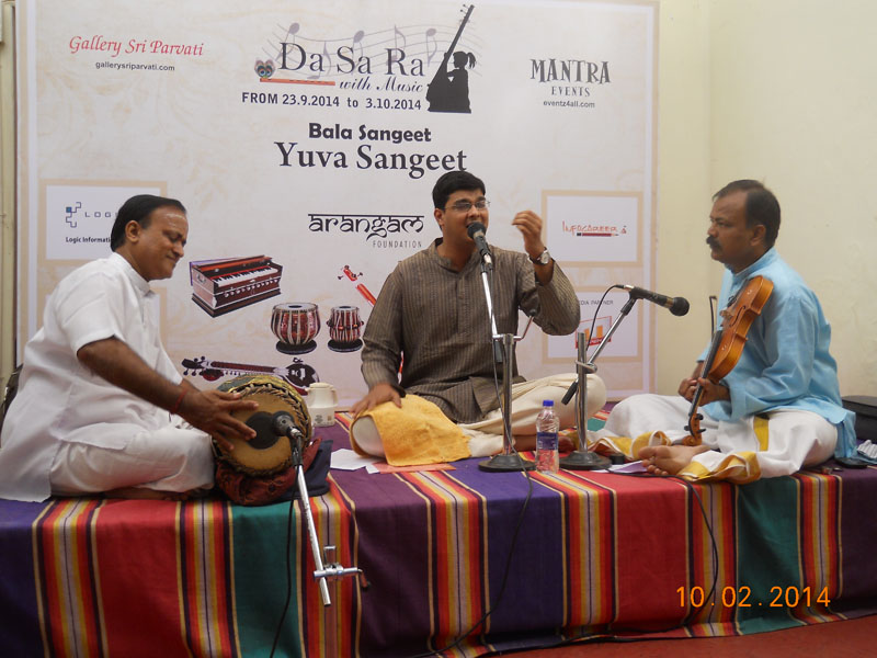 The Gallery Sri Parvati on Eldams Road hosted ‘Da Sa Ra with music’ between September 23 and October 3, 2014. The Bala Sangeet took place from 5.00 pm to 6.00 pm while the Yuva Sangeet took place from 6.30 to 8.30.The event was organised by the Arangam Foundation along with Mantra Events. The online partner for the event was Yocee and the media partner was Mitraen TV.