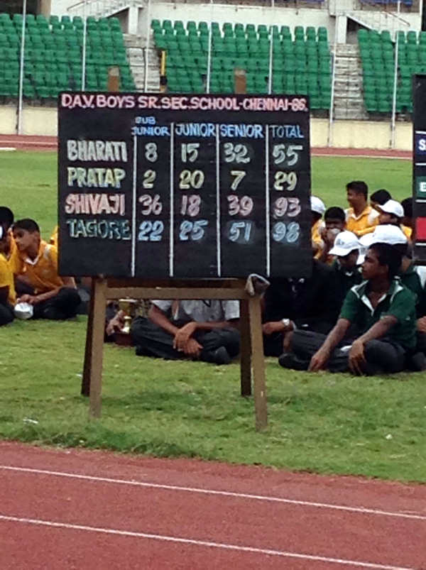 The bright sunny day of 7th July 2014 witnessed the DAV Group of Schools, Gopalapuram, Chennai celebrating their Annual Athletic Sports Meet at The Jawaharlal Nehru Stadium, Chennai. Shri.C.Sridhar, IPS, Joint Commissioner of Police, Chennai North was the Chief guest for the evening. The other dignitaries on the dias included the Secretary, DAV Group of Schools, Shri Jaidev and the Principals of DAV Groups of Schools, Gopalapuram.