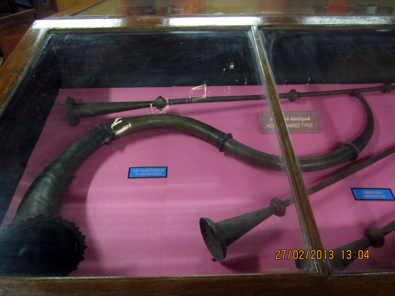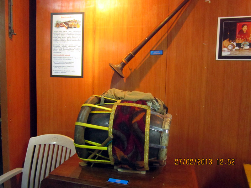 The Museum Department of the Tamil State Government has installed an exhibition of a number of rare and forgotten musical instruments of Indian and Tamil culture. The collection which features a variety of string, percussion, and beat instruments was inaugurated by senior veena artiste Gaayathri on Sunday, 24th February 2013 at the premises of the Government Museum, Chennai.