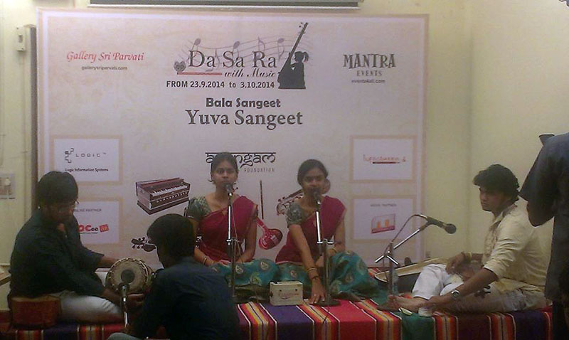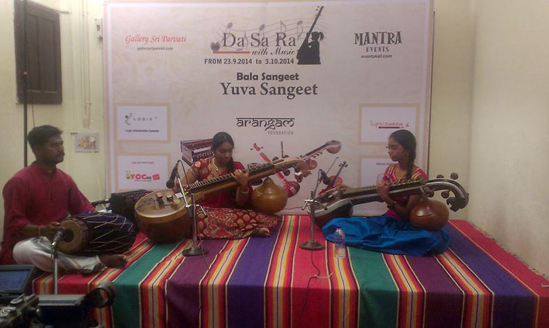 To join all the festive pomp and celebrations of the season, the Da SA Ra With Music fest is celebrated from Sep. 23 to Oct. 3, 2014 at the Gallery Sri Parvati hall in Eldams Road, Chennai. The programmes were planned as two parts, the Bala Sangeet and Yuva Sangeet.