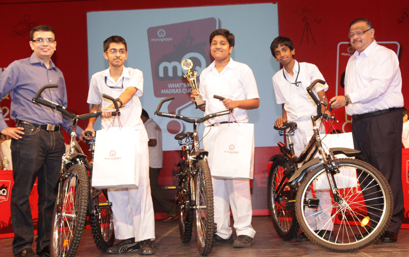 Murugappa Madras Quotient Quiz, held on Sep. 7 was exclusive to school students. With 242 teams participating in the quiz, the team from P.S. Senior with Sankrith, Arjun Aravind & Nishanth, won the quiz. Quizmaster Dr. Navin Jayakumar was impressed with the answers the students had known about the city they live in.