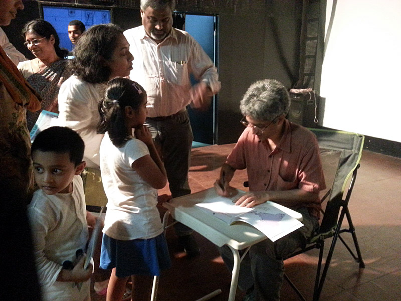 Large group of people with many children filled the venue that evening. On arriving, Shekar Dattatri took a group picture with all the small kids. Aneesha Vijaykumar, from Tulika, gave an introductory speech to the event and also introduced Mr. Dattatri, though he is well-known and did not require any introduction.
